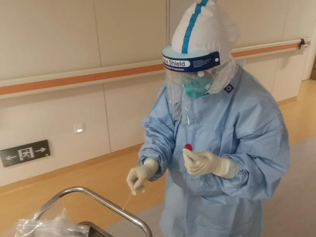 她们在病区采集样本以供病毒检测